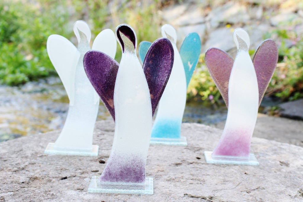 Skleněná figurka anděl bílo-fialový