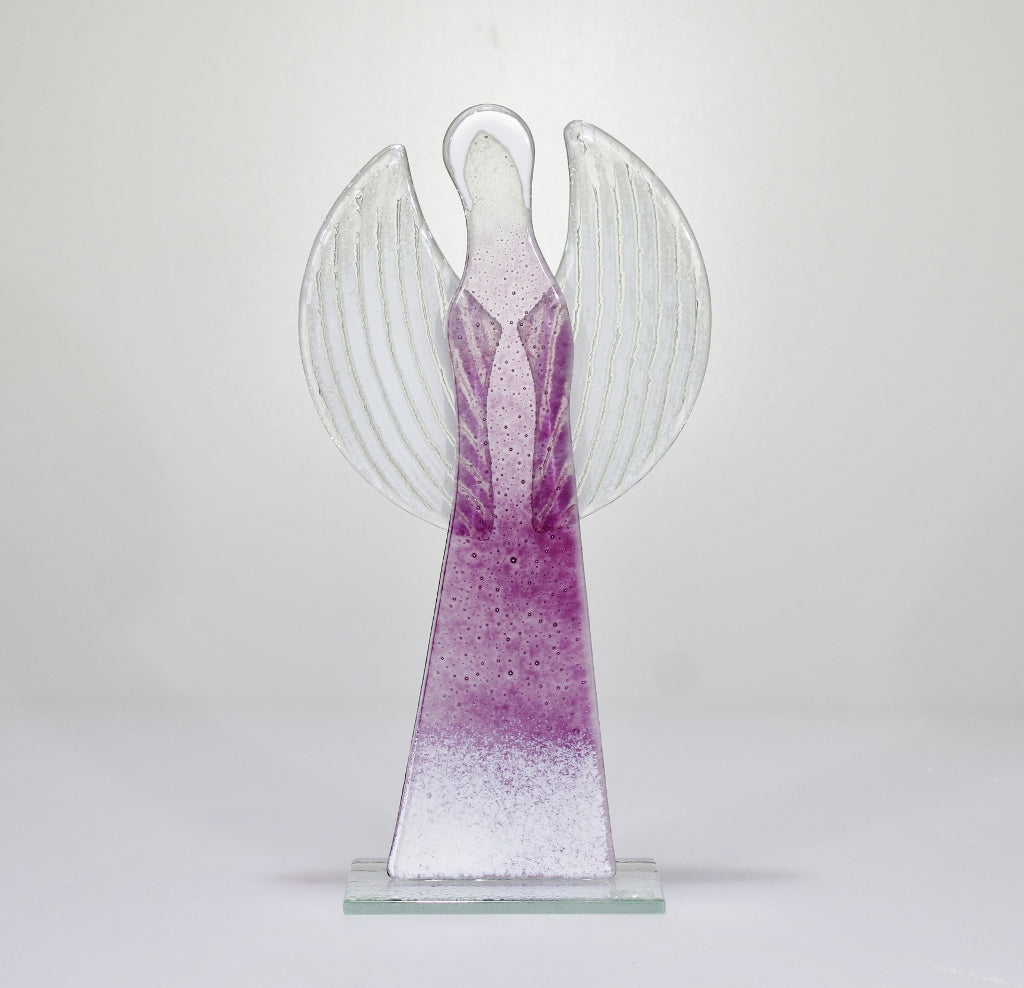 Skleněná figurka anděl velký růžovo-bílý