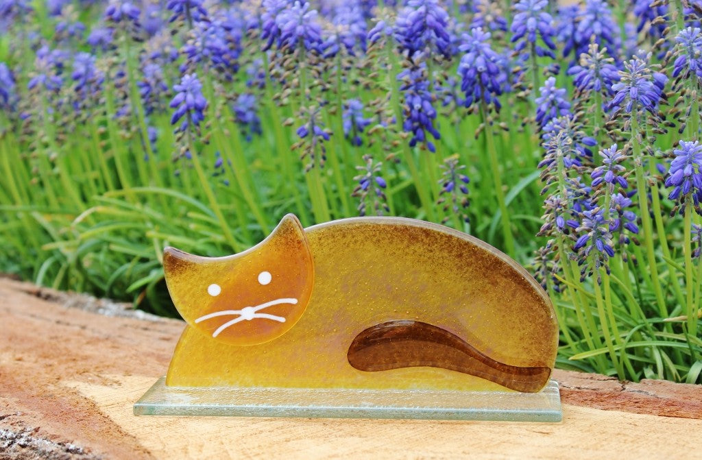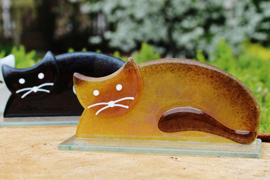 Ambrová kočka krásně ladí s dřevěným nábytkem, krémovými textiliemi nebo měděnými akcenty. Umístěte ji na jídelní stůl nebo na polici vedle keramických dekorací. Tato skleněná figurka je dokonalou dekorací do obýváku, která přináší hřejivou atmosféru a stane se vaším oblíbeným kouskem.