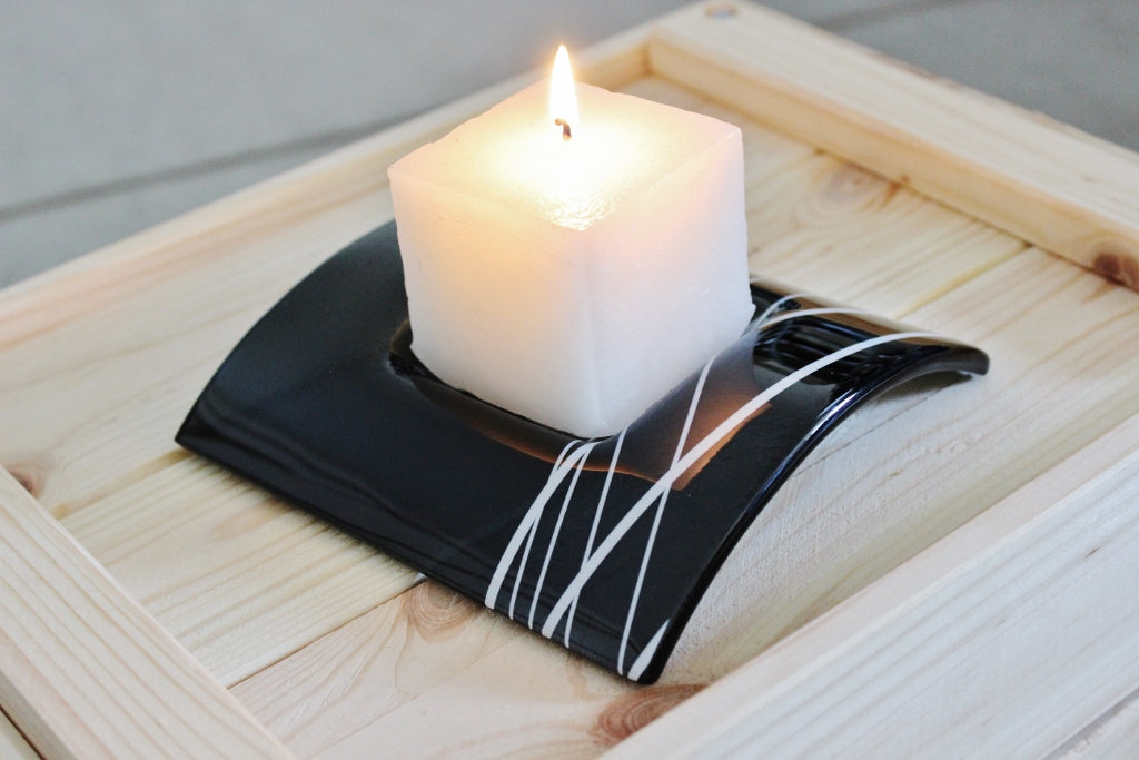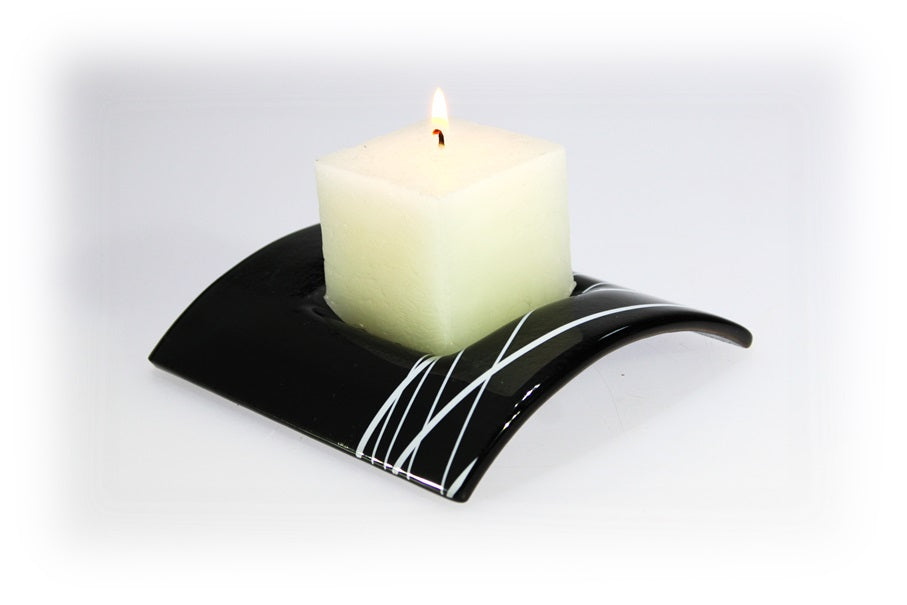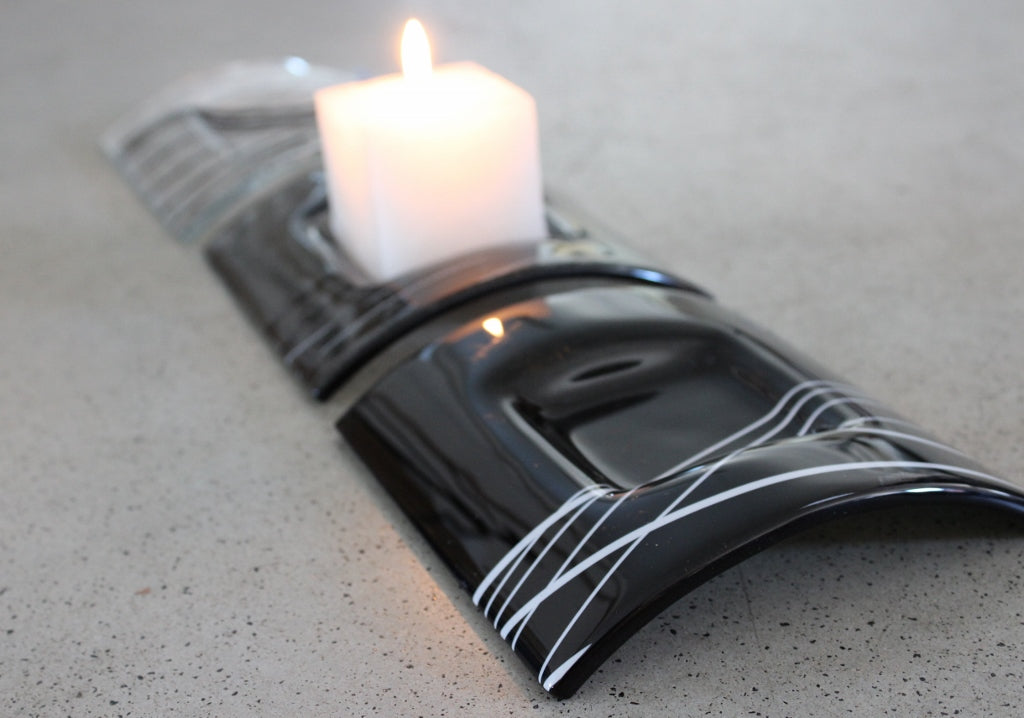 Skleněný svícen TUNEL na 1 svíčku - tmavě šedý s dekorem