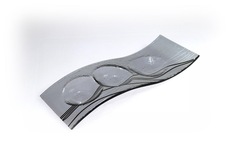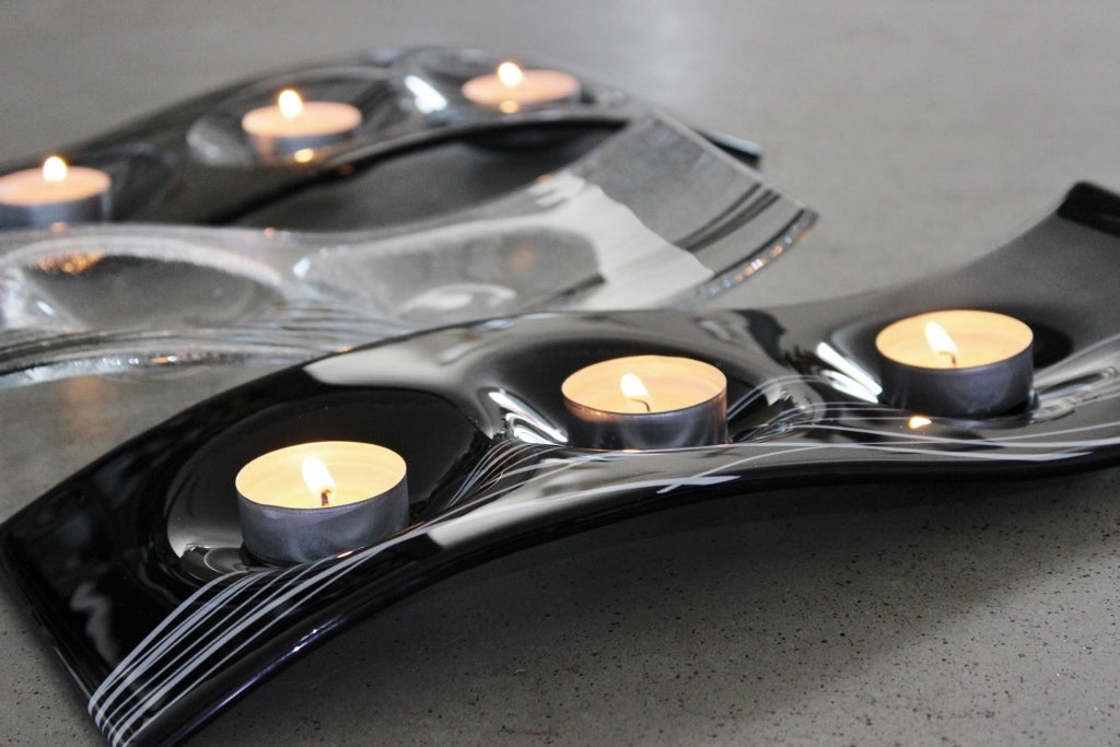 Skleněný svícen FLY šedý s černo-stříbrným dekorem