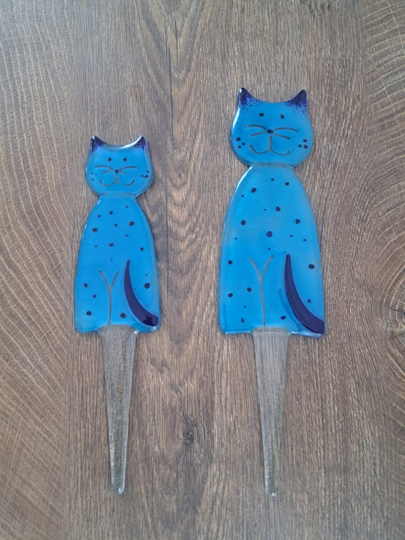 Skleněná figurka Kočka CA3 modrá, na zapichování