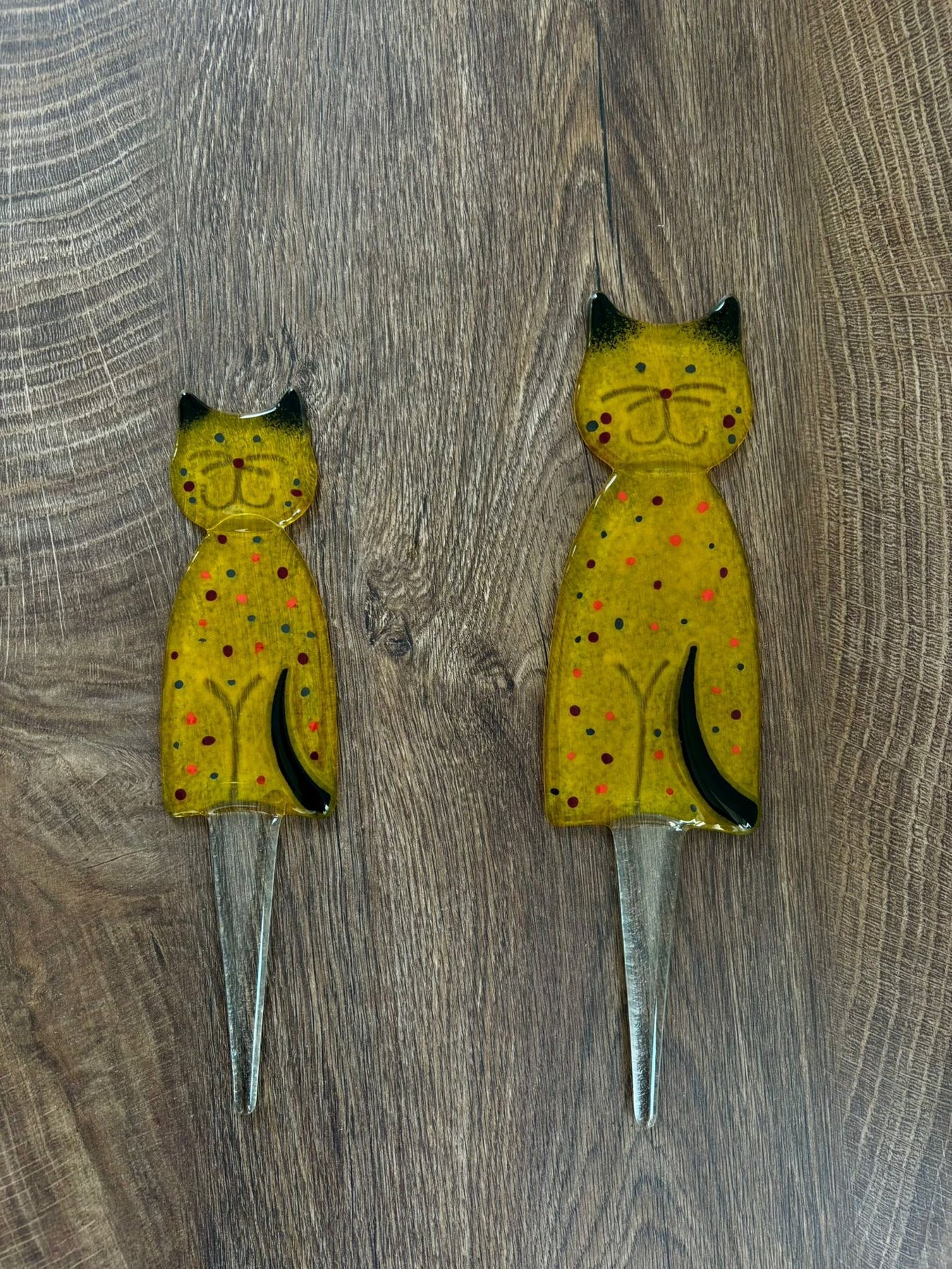 Skleněná figurka Kočka CA5 žlutá, na zapichování