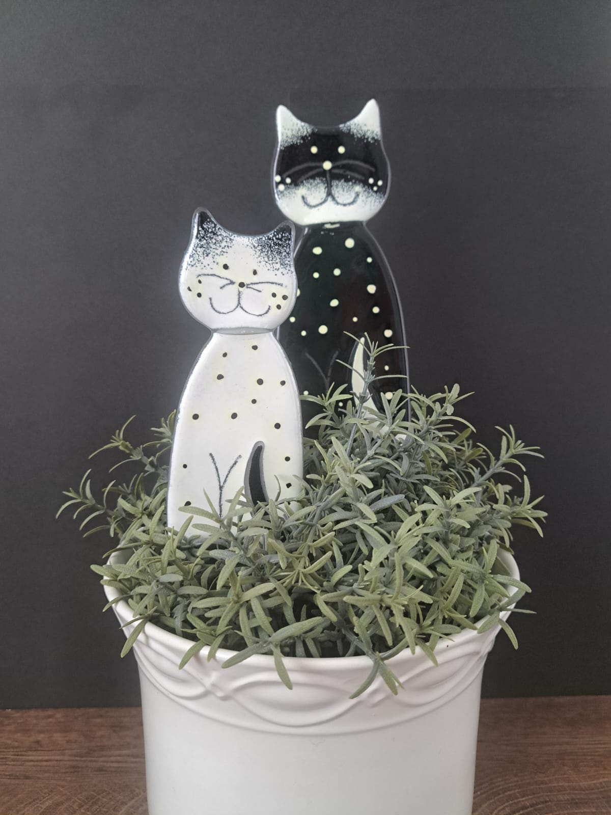 Skleněné figurky Kočky CA10 bílá a černá, na zapichování (sada 2 ks)