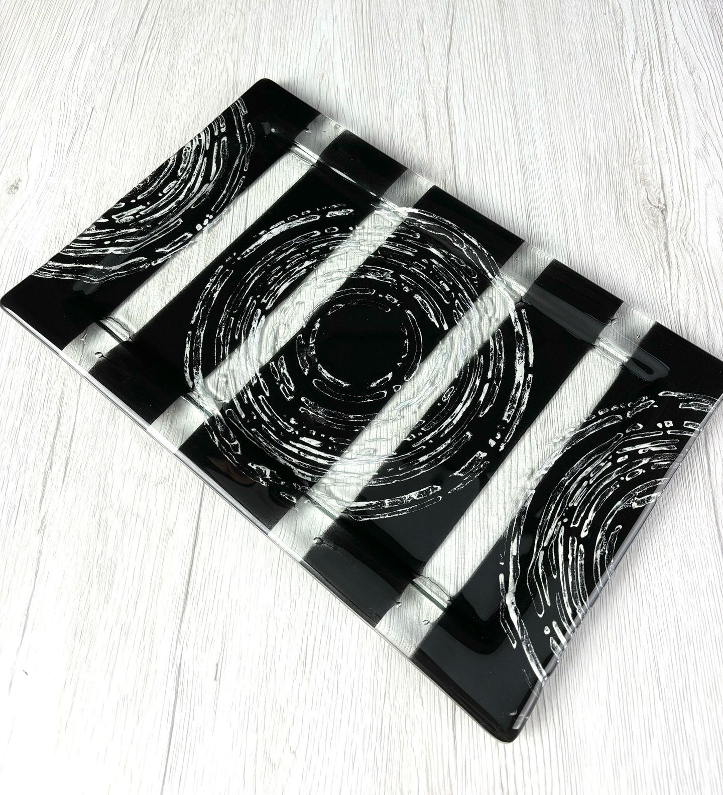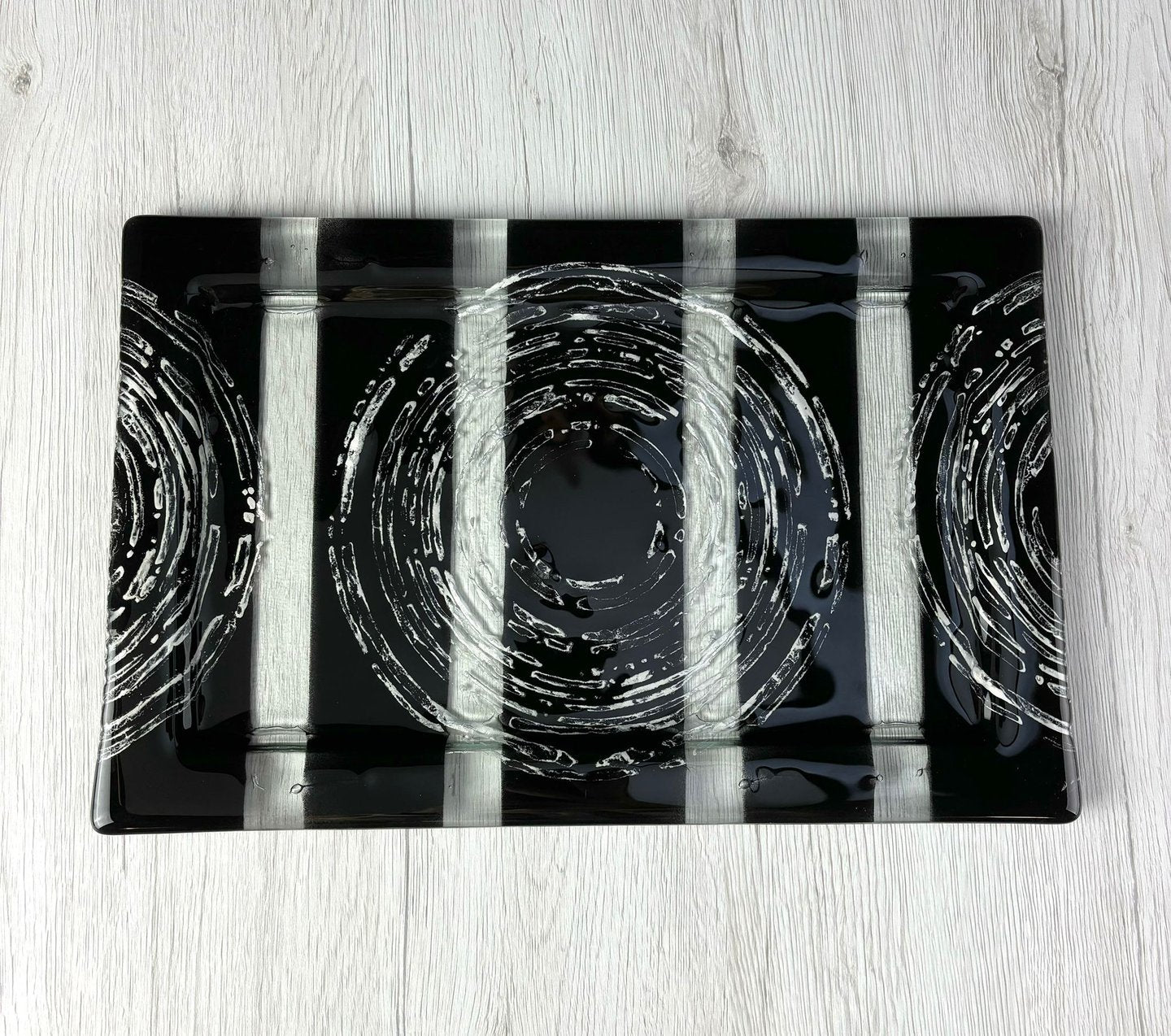 Skleněný tác B23 obdélníkový černý se stříbrným dekorem