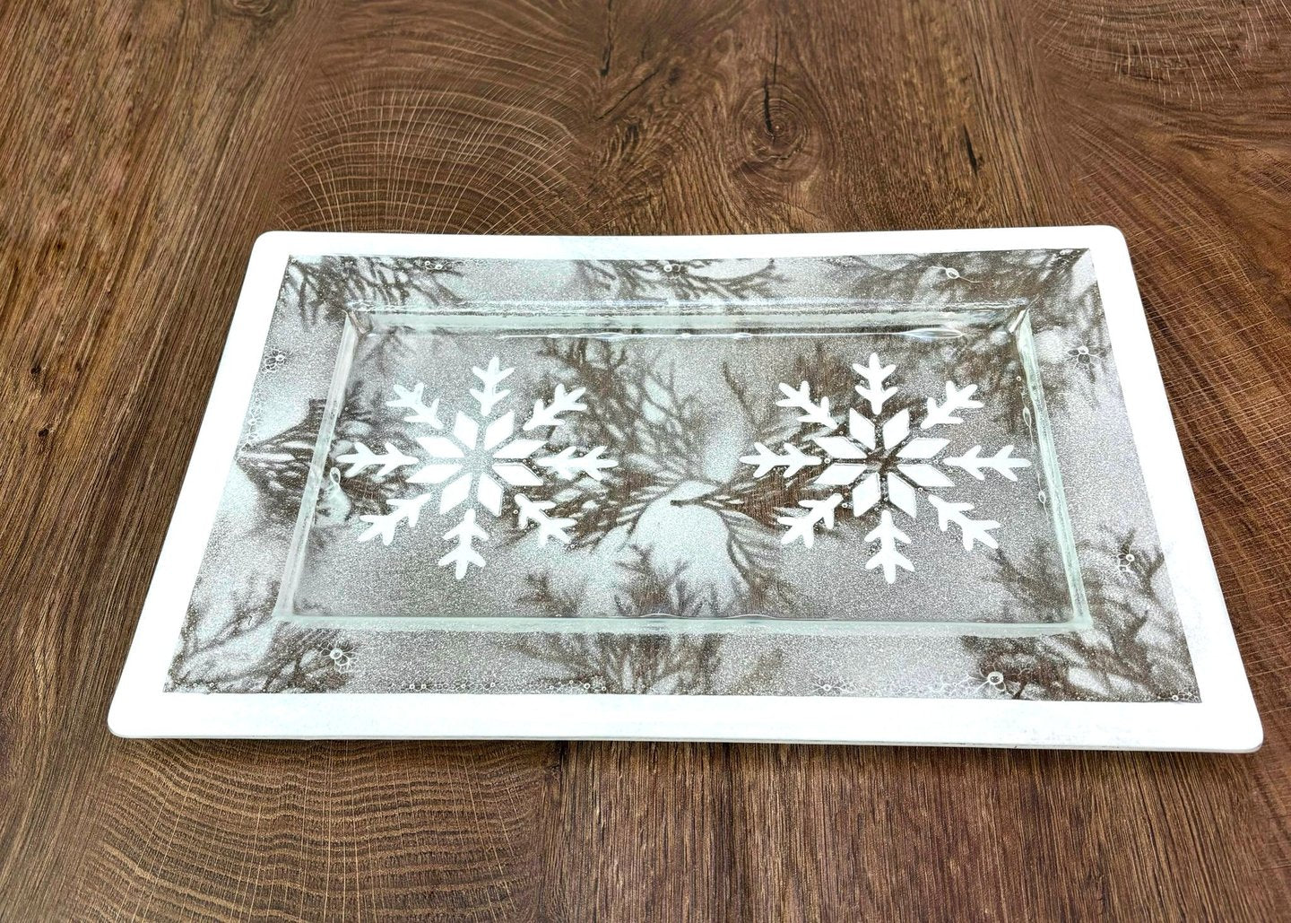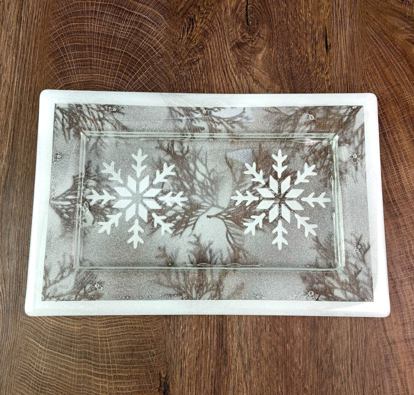 Skleněný tác CH1 obdélníkový zasněžený s bílým okrajem