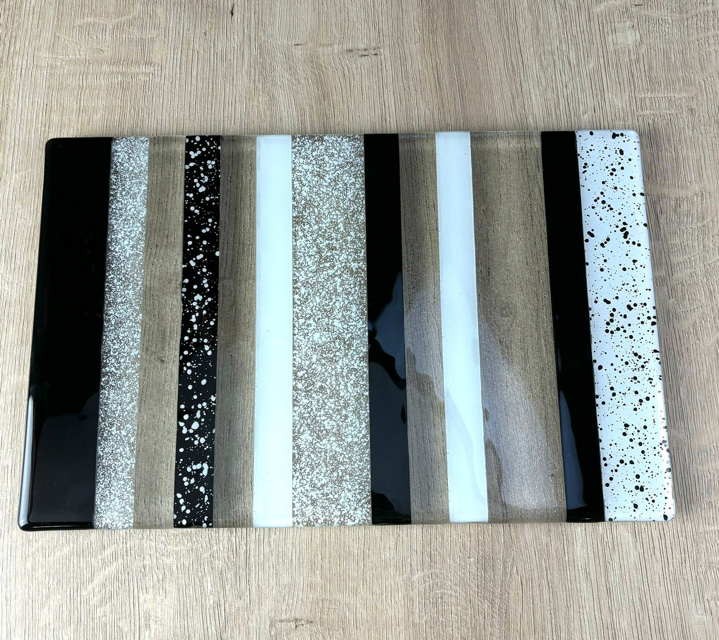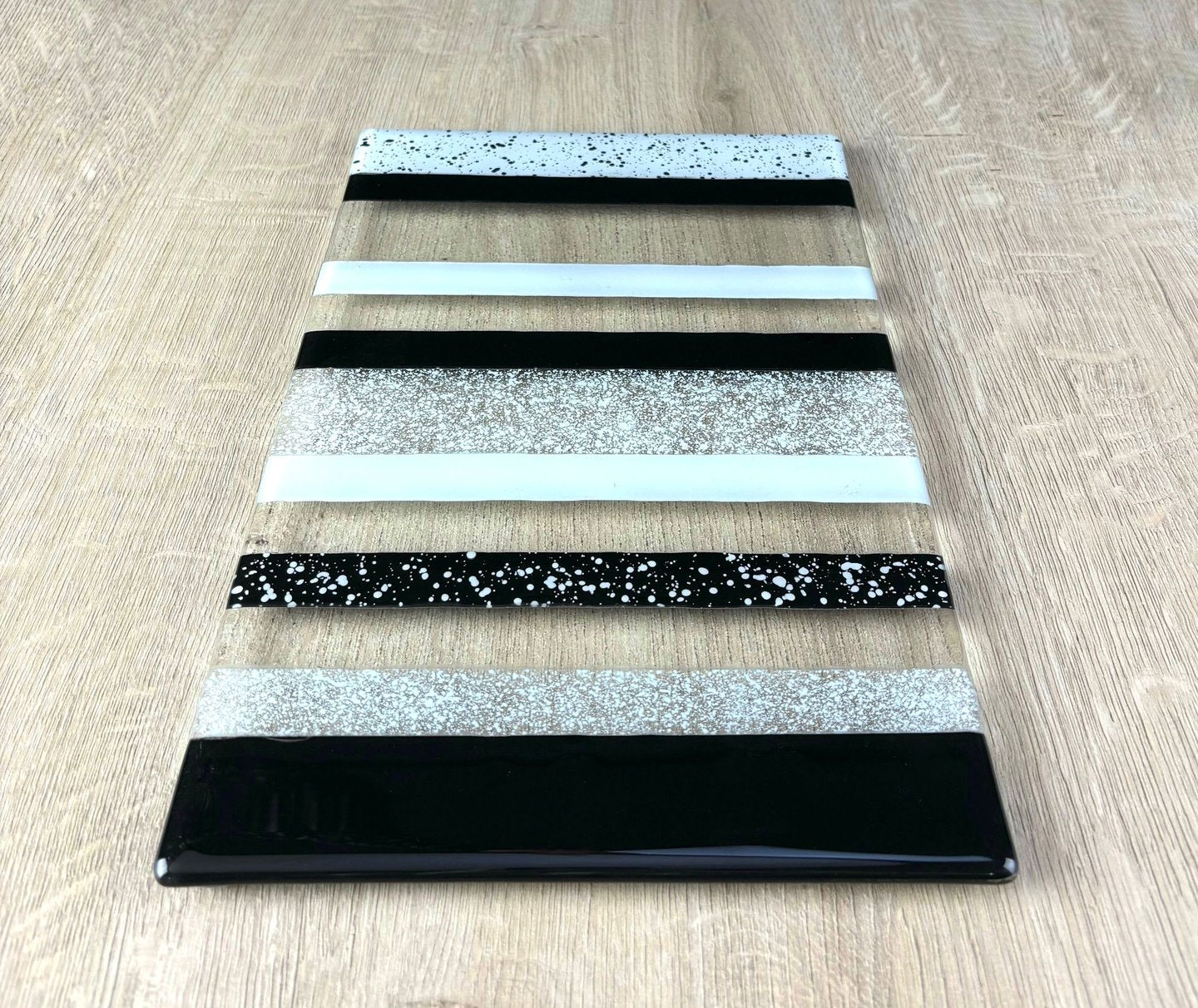Skleněný tác BW7 obdélníkový plochý černobílý