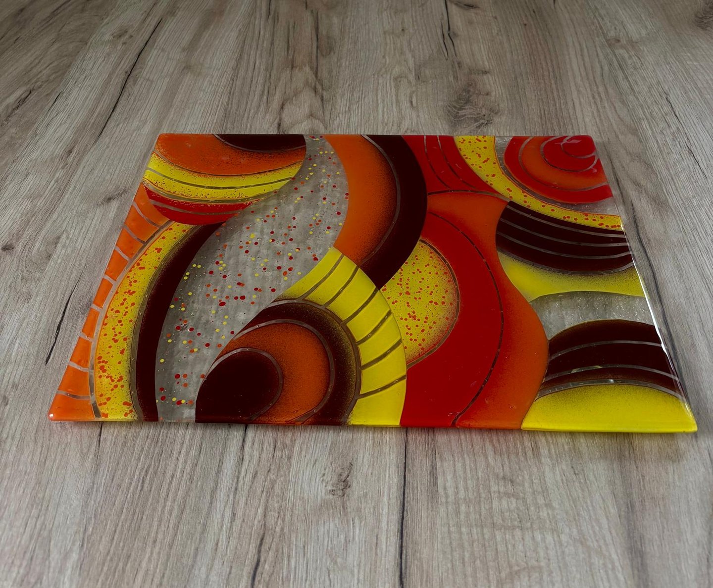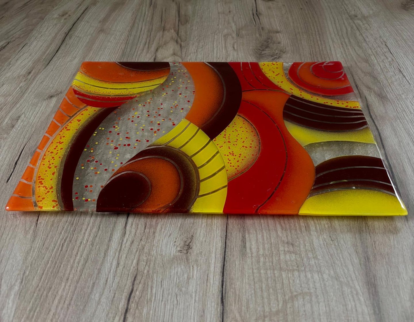 Skleněný tác C45 plochý obdélníkový, žluto-červeno-hnědý