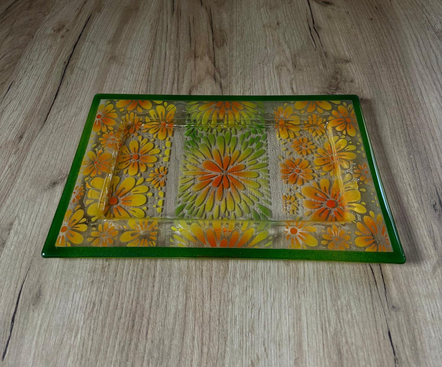 Ručně vyráběné originální fusingové sklo, inspirované přírodou. Rozměry výrobku : 340x220x16mm