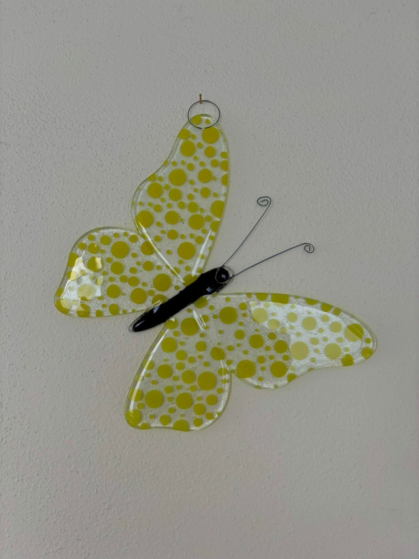 Ručně vyráběné fusingové sklo vhodné pro vnitřní i venkovní použití. Výrobek je opatřen očkem pro zavěšení.