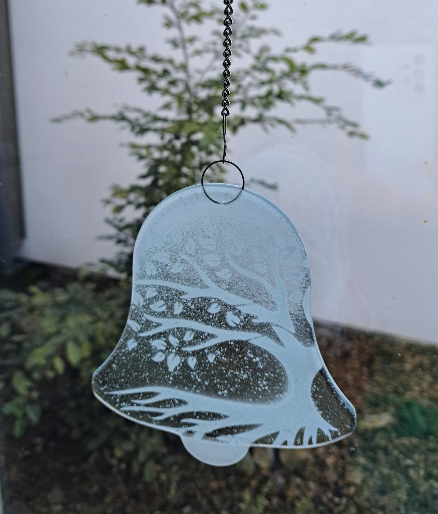 Ručně vyráběné fusingové sklo, k zavěšení do okna, na zeď, vhodné i pro venkovní použití. Rozměry: 150 mm x 135 mm